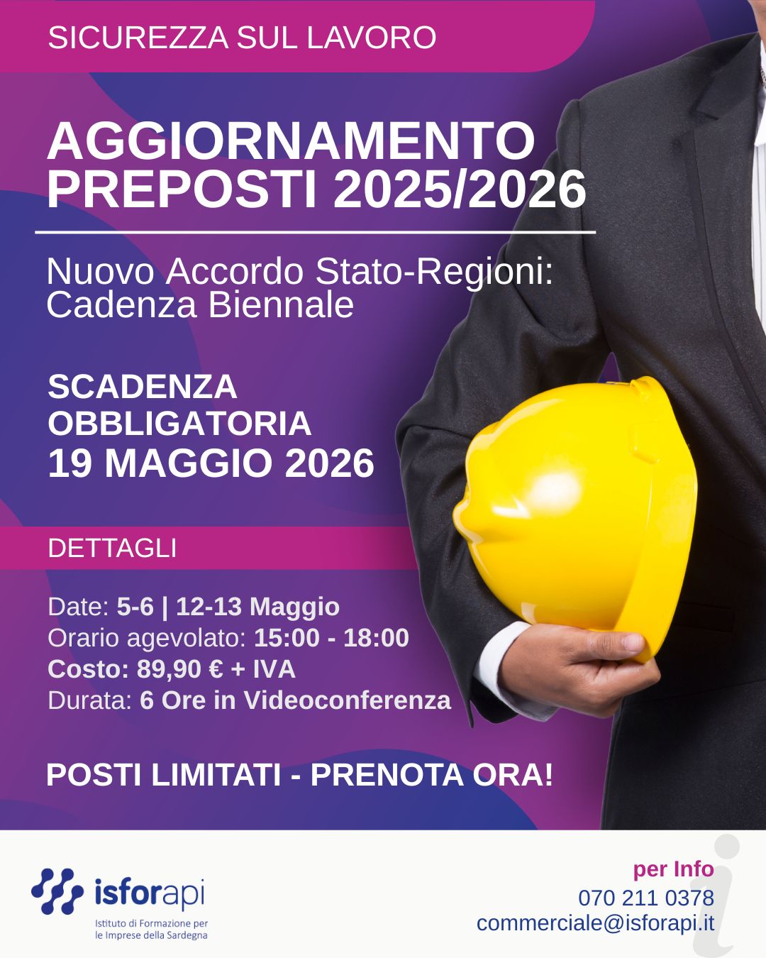 ISFOR API è un Ente di Formazione Professionale accreditato in Sardegna e presso ANPAL.